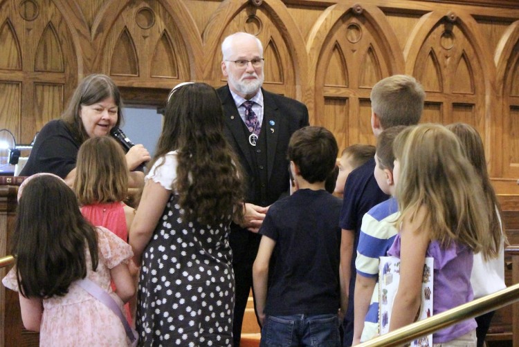 Sunday morning worship was a wonderful and blessed occasion.  As well as Jeff being introduced to the congregation, it was the morning when our Second and Fifth graders received their Bibles. Pastor Meredith made a special introduction of Jeff to the children.