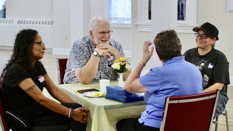 On Saturday afternoon, the congregation was invited to a Meet and Greet in Congregational Hall, where people engaged in conversation with Jeff and his partner Mike. There were many warm smiles and a wide range of interests were discussed, from music to communications and outreach to church history.